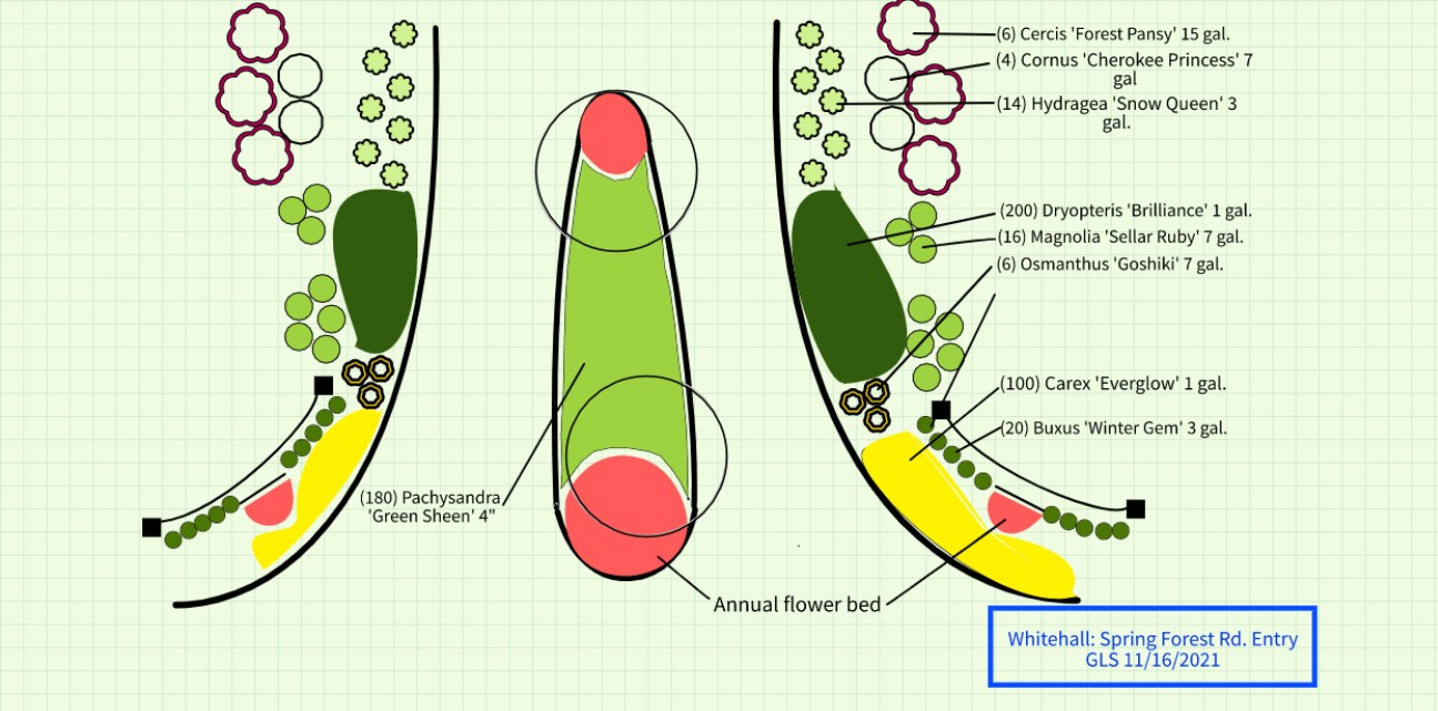 The funds received from the January special assessment are earmarked for beautification at the four major entrances to Whitehall.  We have contracted with Groundsmith to complete the work and are excited that the work will get underway soon.